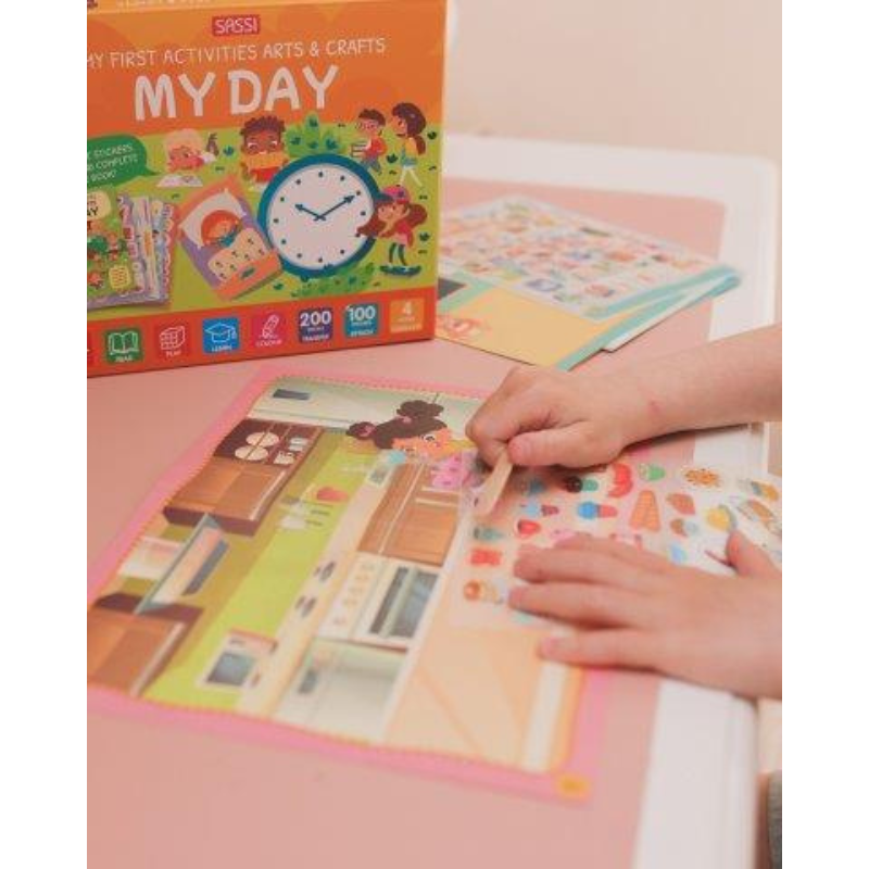A complete activity book with colouring pages, stickers, figure decals, and crafts to encourage learning and coordination in children.
