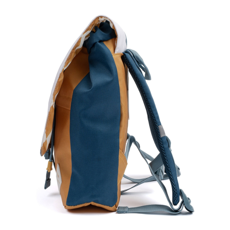 This Fabelab backpack is great for going on little trips and adventures. The backpack holds a front pocket with a zipper for smaller items and easily closes with a drawstring and front flap-over buckle closure.