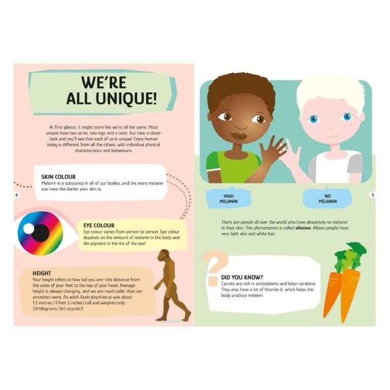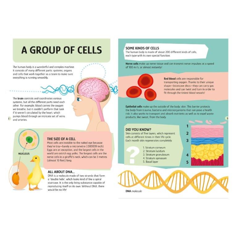 Put together the detailed human body shaped puzzle and read the book to learn the answers to these questions and more about the cycle of life of the human body.