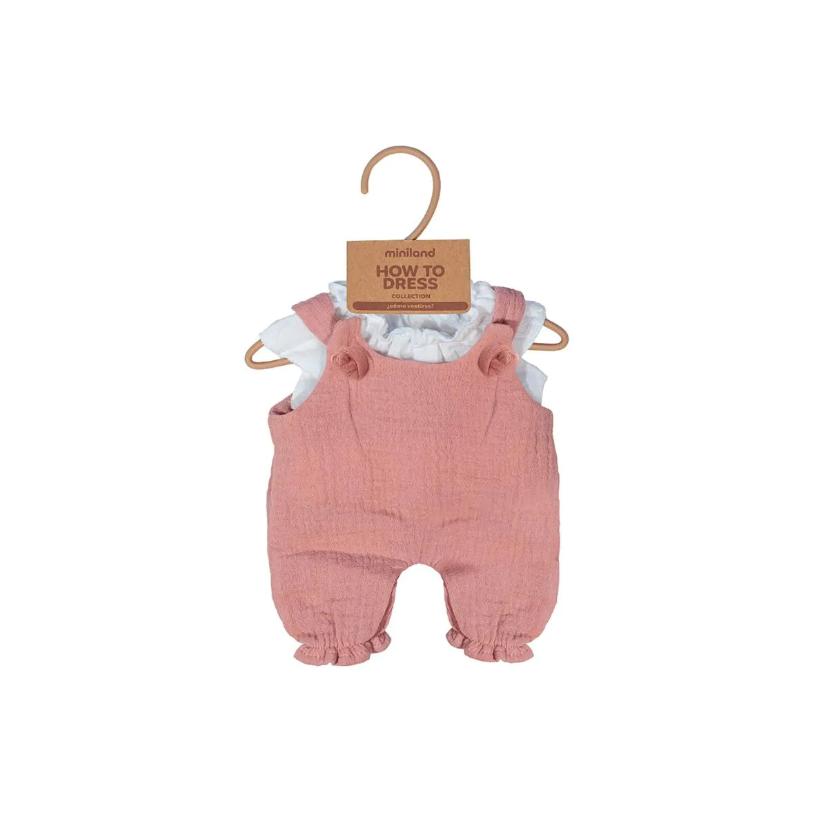 Equip your 32 cm Miniland doll with this practical dungarees and shirt combination, perfect for outdoor adventures and everyday play. The soft muslin dungarees paired with a coordinating frilled shirt create versatile styling options that encourage creative expression and imaginative scenarios. Ideal for developing storytelling skills, children can dress their doll for various activities and seasons. This essential clothing set expands your doll's wardrobe and supports open-ended, symbolic play that fosters developmental growth through fashion exploration.