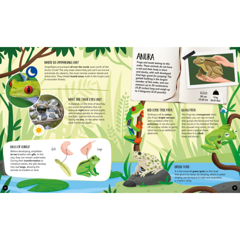 Our planet is home to a great variety of animals. Vertebrates and invertebrates populate every corner of the earth, adapting in extraordinary ways to every habitat, even the most extreme. Read this atlas and discover all the answers to your questions about the animal kingdom!